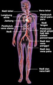 b. Pembuluh darah (pembuluh darah vena /pembuluh darah balik dan pembuluh darah arteri / pembuluh darah nadi.